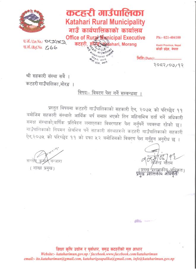 सहकारी संस्थाहरुले विवरण पेश गर्ने सम्बन्धी सूचना ।