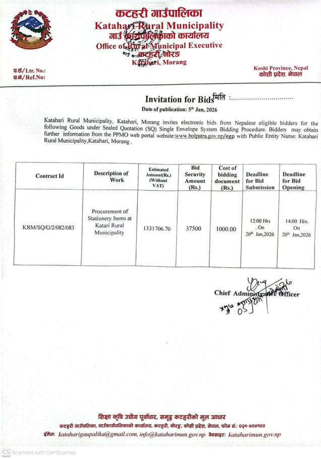 कटहरी गाउँपालिकाको आधिकारिक वेबसाईटमा हार्दिक स्वागत छ |