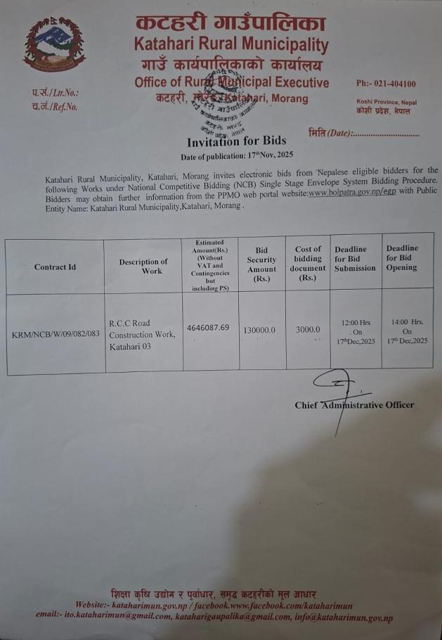 कटहरी गाउँपालिकाको आधिकारिक वेबसाईटमा हार्दिक स्वागत छ |