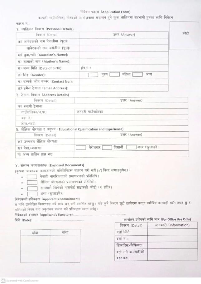 कुक तालिम संचालन सम्बन्धमा सूचना ।