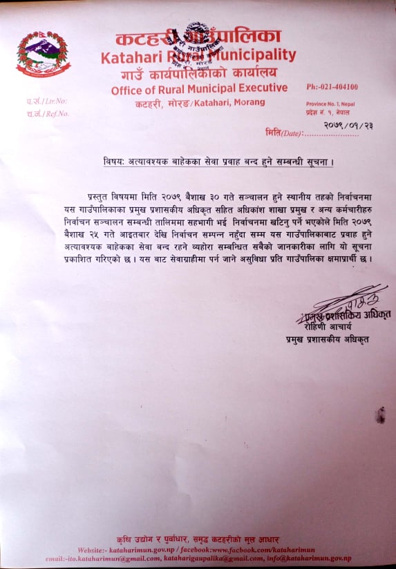 अत्यावश्यक बाहेकका सेवा प्नवाह बन्द सम्बन्धी सूचना !!!