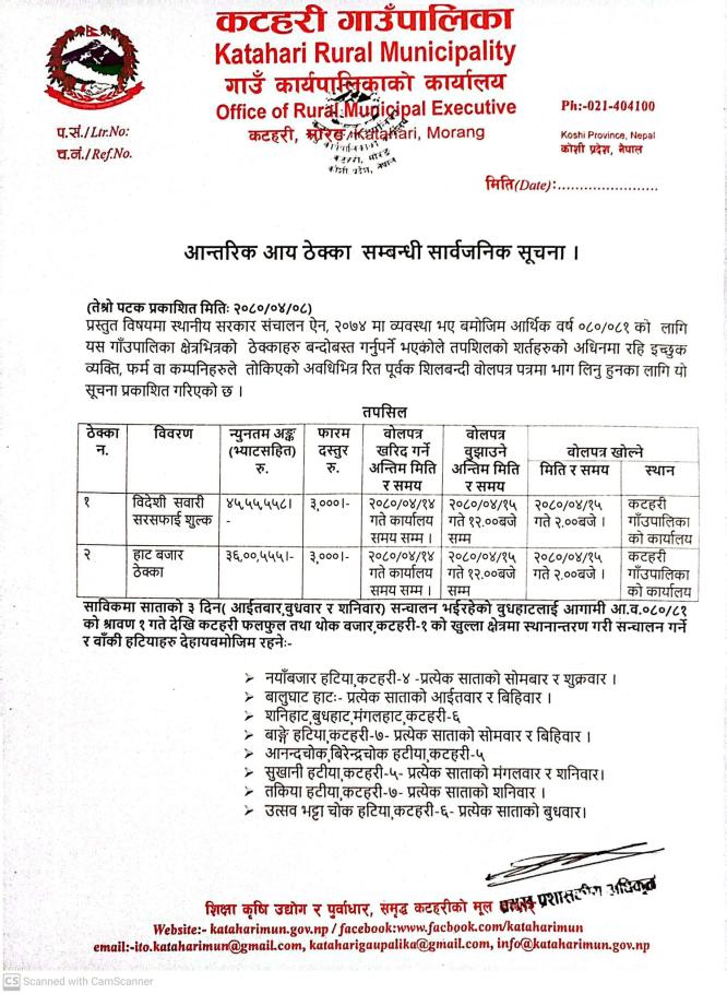 आन्तरिक आय ठेक्का सम्बन्धी सार्वजनिक सूचना !!
