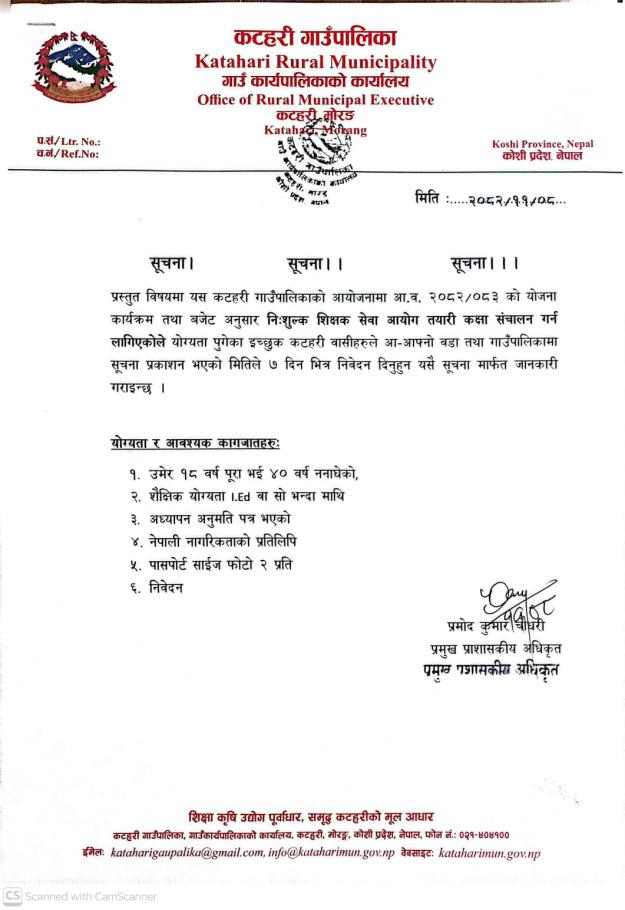 नि:शुल्क शिक्षक सेवा आयोग तयारी संचालन सम्बन्धमा सूचना ।